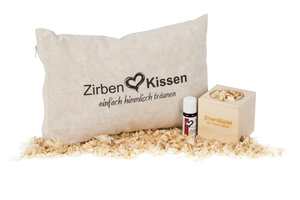 Im Geschenkkarton mit dem Aufdruck "Die ZirbenFamilie wünscht Gute Nacht"