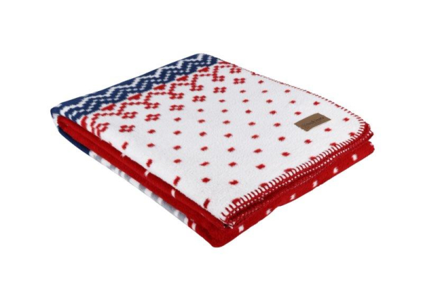 Grösse: 150x200 cm Material: 58% Cotton / 32% Polyacryl /10% Polyester Pflege: max. 30oC waschbar, nicht trocknergeeignet Farbe: rot/blau