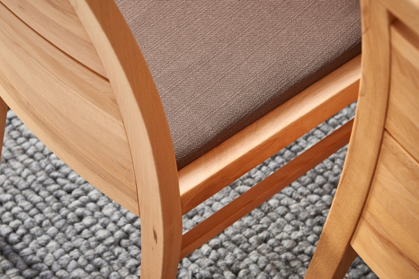 Rücken Holz, Sitz fest gepolstert, ohne Gleiter