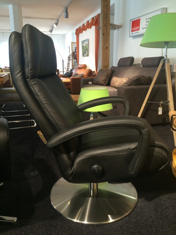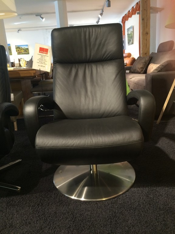 Sessel mit bezogenen Armlehnen, manuelle Verstellung Grösse L, Sitzbreite: breit Bezug Leder Longlife 24 black B/T/H 76/87/114cm Teller in Edelstahloptik
